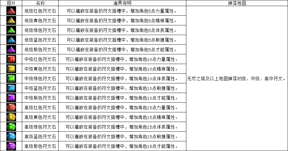 请注意,在高等级地图中,低级和中级符文石也会掉落。(例如:秘密研究所 — 低级、中级、高级符文石全部掉落)